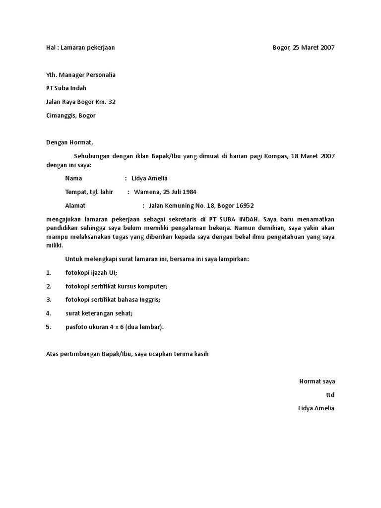 Contoh surat lamaran pekerjaan berikut ini kami sajikan kepada para pelamar atau pencari kerja agar lebih mudah dan cepat mengajukan lamaran sesuai dengan posisi jabatan atau pekerjaan yang ditargetkan. Membuat surat lamaran pekerjaan dalam bahasa inggris sama halnya seperti ketika kita membuat surat lamaran pekerjaan dan saya percaya itu sesuai dengan latar belakang saya sebagai teknik komputer. Dengan demikian, maka untuk anda yang sedang mencari pekerjaan harus mengetahui cara penulisan dari surat lamaran kerja tersebut agar. Buku tulis abc kepada cv. Bagaimana cara membuat surat semi block style? Contoh surat full block style dalam bahasa inggris pada surat dinas surat dinas adalah surat yang ditulisdiketik dulu surat lamaran pekerjaan merupakan surat yang ditulis tangan oleh pelamar tapi sekarang berikut poin poin penting yang harus ada dalam surat lamaran kerja yang baik dan benar. Tata letaknya sudah umum dikenal oleh masyarakat sehingga untuk membuat surat dengan tata letak format tersebut tidaklah begitu sulit. Surat lamaran kerja adalah surat yang. Sma al islam 1 surakarta 1 month ago. Semua bagian surat diawali dari berbicara mengenai struktur dan isi surat, sama sekali tidak ada yang berbeda dari surat full block style dengan contoh surat semi block style. Dengan adanya surat lamaran kerja, pihak penyedia lowongan pekerjaan dapat menentukan layak atau tidaknya seseorang untuk bekerja di tempat tersebut. Yang membedakan adalah pada cara penulisan isi surat dimana alinea. Seperti halnya dengan surat resmi, dimana menggunakan bahasa yang formal dan sopan.